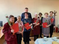 Денис Юрьевич поздравил представителей "Союза пенсионеров" с 20-летием организации и отметил благодарностями самых активных! Организация существует с 2000 года, ее председателем является Валентина Александровна Никифорова. Есть в объединении и сторожилы, и участники, пришедшие совсем недавно - всего более 700 человек.
