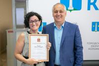 С вступительным словом к общественникам обратился лидер Общественного объединения «Родной край», председатель совета директоров ОАО «Коломенский завод РТИ» Зафиров Эвклид Герасимович, который выразил большое уважение и поблагодарил участников заседания за большую работу, которая выполняется СО НКО в муниципалитете. Трех руководителей, чья работа была отмечена Московской областной Думой, Эвклид Герасимович наградил лично.
