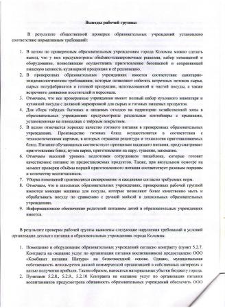 Акт Общественной проверки №1 образовательных учреждений Коломенского городского округа по вопросу организации питания, а так же проверки организации, представляющую данную услугу. 15 апреля 2018 года.
