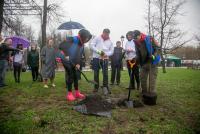 Во время субботника Наталья Виртуозова, Никита Чаплин и Денис Лебедев высадили в сквере молодые деревья и запустили фонтан – с сегодняшнего дня все фонтаны в области начнут работать регулярно.