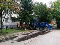 19 августа, в доме по ул. Зеленая, дом 12, сотрудниками ООО "Департамент городского хозяйства" проводились работы по замене участка канализационного трубопровода, проходящего через фундамент дома и соединяющего внутридомовую канализацию со смотровым колодцем.