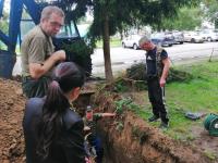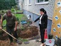 Специалистами ООО "Департамент городского хозяйства" было проведено обследование, которое показало прогиб трубы в результате просадки грунта. Решение проблемы не заставило себя долго ждать. Чайкина Ольга Вячеславовна - инженер, временно исполняющий обязанности начальника РЭУ "Флотский" - лично контролировала весь процесс. Член Общественной палаты Андрей Смирнов принимал непосредственное участие при проведении работ. Также на встрече присутствовала старшая по дому Тарасова Вера Андреевна.