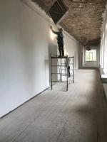 Подрядчиком на объекте выступает компания ООО «АРТСТРОЙ». Как рассказал директор «Надежды» Дмитрий Московцев, все работы в школе проходят по графику. На первом этаже полностью отремонтированы полы в коридоре, раздевалке и помещении входной группы - везде уложена плитка. На втором этаже закончен демонтаж потолков и пола в коридоре и кабинетах. Рабочие уложили черновое напольное покрытие, оштукатурили стены, подготовили их под покраску. Старые деревянные оконные рамы заменили на пластиковые. Чистовые работы продолжат уже после замены крыши - этот этап капремонта следующий на очереди.