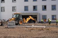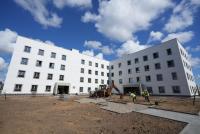 На сегодняшний день строительная готовность поликлиники составляет более 75%. Завершаются отделочные работы, ведется монтаж внутренних инженерных систем (вентиляции, электроснабжения), дверей, устройство входных групп. На прилегающей территории обустраивают подъездные пути - круговой проезд для спецавтомобилей, парковку для сотрудников и посетителей, монтируют наружное освещение.