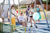 Новая детская площадка соответствует всем современным требованиям. Она оснащёна травмобезопасным покрытием, комфортными местами для отдыха с информационными стендами и урнами. Ну а для детишек, конечно же, здесь целый ряд игровых элементов: качели разных видов, большой комплекс с горками и местами для лазания, карусель. Для любителей физкультуры есть спортивное ядро.