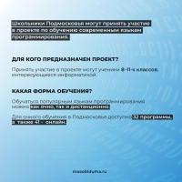 Школьники Подмосковья могут принять участие в проекте по обучению современным языкам программирования. Поучаствовать могут ученики 8–11-х классов, интересующиеся информатикой.