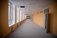 Разноуровневый цветной корпус с первого взгляда поражает своими размерами. Кажется, без сопровождающего здесь можно с лёгкостью заблудиться: общая полезная площадь здания – 9695 квадратных метров. Усиливают ощущения свободного пространства панорамные окна, высокие потолки, широкие коридоры и просторные лестничные пролёты. В самом корпусе тепло, светло и сухо. Отопление уже включили, сейчас тут полным ходом идут отделочные работы.