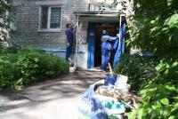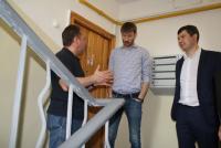 Работы в одном из подъездов дома № 14 по проспекту Кирова близятся к завершению. Рабочие Департамента городского хозяйства заканчивают покраску входной группы. Комиссия оценила качество выполненных работ, сделав небольшие замечания, в том числе, касающиеся оформления коробов внутридомовых интернет-сетей.
