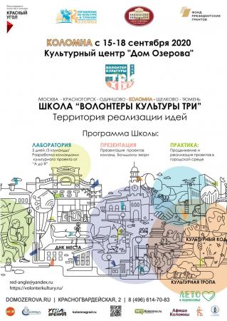 С 15 по 18 сентября в Коломенском городском округе пройдет презентация проектов «Школы волонтеров культуры ТРИ». Мероприятие пройдет в рамках проекта «Волонтер Культуры: лучшие практики и инициативы». Организаторами выступят центр «Дом Озерова» и Фонд поддержки искусства и культуры при поддержке Фонда президентских грантов.