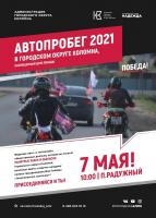 7 мая стартует ежегодная молодёжная патриотическая акция "Автопробег 2021", посвященная 76-летию победы в Великой Отечественной Войне. Начало в 10:00. Старт акции будет дан в поселке Радужный.