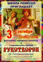 Школа ремёсел приглашает всех желающих принять участие в Фестивале народных ремёсел и современных техник "Рукотворец - 2021". Мероприятие состоится 3 октября.
