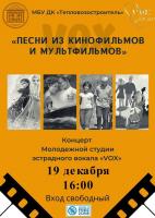 Дворец культуры «Тепловозостроитель» приглашает коломенцев насладиться любимыми хитами из кинофильмов и мультфильмов в исполнении Молодежной студии эстрадного вокала «VOX» ?.