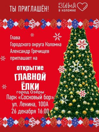 Озерчан приглашают на открытие Главной елки города. Долгожданное для многих событие состоится 26 декабря на площадке в парке «Сосновый бор». Гостей предновогоднего праздника поздравят Дед Мороз и глава Городского округа Коломна Александр Гречищев.