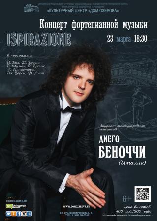 23 марта в 18:30 в культурном центре «Дом Озерова» в рамках проекта «Музыкальная гостиная» состоится концерт фортепианной музыки «ISPIRAZIONE» в исполнении Лауреата международных конкурсов Диего Беноччи (Италия).