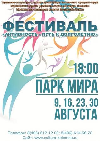 9 августа Коломенский городской округ присоединяется к фестивалю «Активность – путь к долголетию», который проходит на территории Московской области в целях пропаганды активного долголетия и привлечения граждан пожилого возраста и инвалидов к здоровому образу жизни.