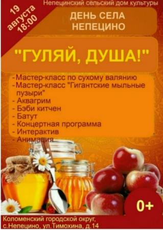 19 августа на площади перед Непецинским сельским Домом культуры состоится большое праздничное мероприятие, посвященное празднованию Дня села, а также православному празднику Яблочный Спас.