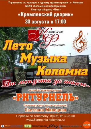Для вас выступит ансамбль камерной музыки «Ритурнель» с программой «От менуэта до танго».