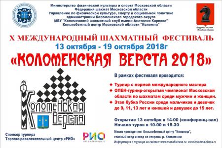 С 13 по 19 октября в Конькобежном центре Коломна будет проходить X Международный шахматный фестиваль Коломенская верста-2018.