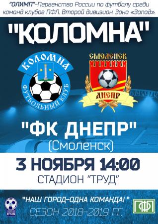 Футбольный клуб «Коломна» принимает на своём поле команду ФК «Днепр» (г. Смоленск).