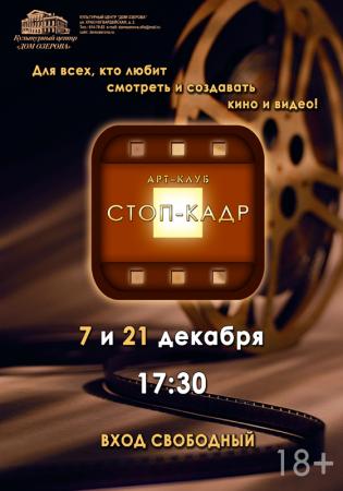 7 и 21 декабря в 17:30 в культурном центре «Дом Озерова» пройдут творческие встречи арт-клуба «Стоп-кадр».