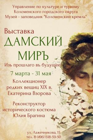 7 марта в Краеведческом музее открывается выставка «Дамский мир». Из прошлого в будущее вас перенесут коллекционер Екатерина Взорова и реконструктор исторического костюма Юлия Брагина. На выставке будут представлены модные тенденции второй половины XIX столетия и начала XX века.