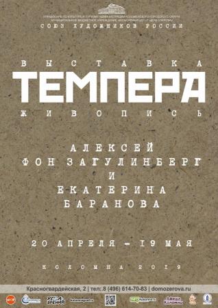 20 апреля (суббота) в 13.00 в Культурном центре «Дом Озерова» в рамках проекта «Молодежная творческая мастерская» состоится открытие выставки «Темпера», которая представит произведения молодых коломенских художников, членов Союза художников России Екатерины Барановой и Алексея Загулина.