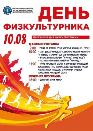 10 августа, в субботу, коломенцы отметят День физкультурника – профессиональный праздник преподавателей физкультуры. В торжествах примут участие все, кто имеет отношение к спорту: тренеры, студенты и выпускники профильных учебных заведений, люди, которые ведут здоровый образ жизни.