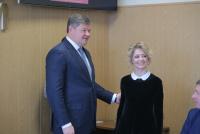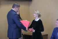 Глава Коломенского городского округа Денис Лебедев вручил юбилейную медаль «90 лет Московской области» директору Музейной фабрики пастилы Елене Дмитриевой.