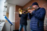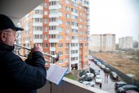 Они вышли на балконы колычевской многоэтажки и исполнили всеми любимые и узнаваемые произведения, самой символичной из которых стала мелодия песни «День Победы».