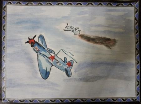 - Жуков Тимофей с работой «Воздушный бой» занял второе место среди конкурсантов 7-13 лет.