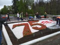 - Традиционно эту клумбу к 9 мая мы оформляем в виде звезды, - рассказывает заместитель директора МБУ "Коломенское благоустройство" Татьяна Истомина. – Однако в этом году, в связи с юбилеем Победы и новым гранитным монументом, установленным здесь, концепцию решено изменить. Клумбу украсит надпись «75 лет». Цифры выполнены из цветочной рассады вечноцветущей бегонии, а буквы выложены инертным материалом – мраморной белой крошкой. Завершит композицию георгиевская лента на фоне зелёного рулонного газона.