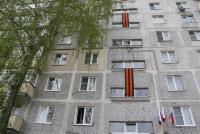 Георгиевская ленточка - символ не сломленного духом народа, который боролся, победил фашизм в Великой Отечественной войне. Сегодня крупноформатные полотнища Георгиевской ленты украсили жилые дома Коломенского городского округа.
