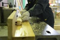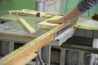 - Материал, с которым работает, - это в основном сосна, - говорит столяр Галина Шиндякова. - Прежде, чем начать изготовление чего-либо, лес сушим. На это уходит примерно две недели, ведь необходимо, чтобы материал хорошо просох. Затем распиливаем элементы в размер, фугуем. По одной двери не производим, делаем сразу большое количество, но если понадобится, я могу изготовить её и за один день.