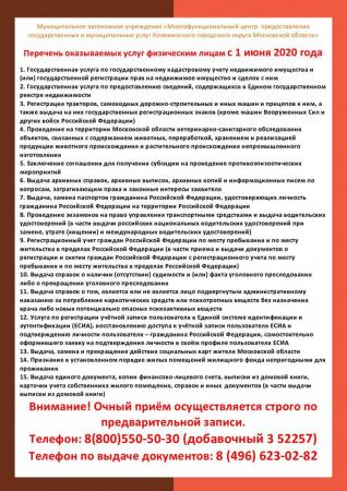 В Коломенском МФЦ возобновляется прием физических лиц