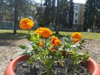Территория больничного городка постепенно преображается. Незадолго до празднования Дня медицинского работника, который в этом году будет отмечаться 21 июня, здесь появились дополнительные клумбы и вазоны с цветами.