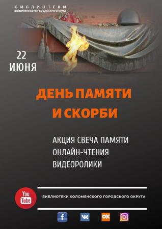 В День памяти и скорби коломенские библиотеки присоединились к Всероссийской акции «Свеча памяти». Они подготовили памятную программу, которая доступна в официальных группах социальных сетей.