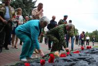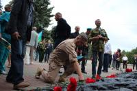 Участники митинга возложили цветы к памятнику коломенцам, погибшим в локальных войнах и военных конфликтах «Скорбящий ангел».