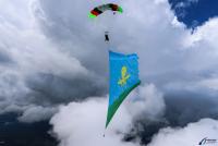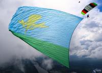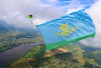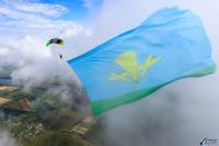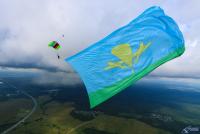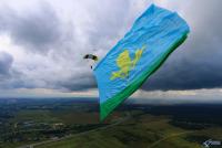 Парашютисты развернули флаг ВДВ площадью более 1000 квадратных метров. Организаторами выступил холдинг «Технодинамика» Госкорпорации Ростех.