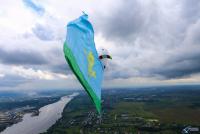 Свое имя в историю вписал Олег Тощев, инструктор по парашютно-десантной подготовке «Аэрограда Коломна». За его плечами – почти 4 000 прыжков и большой опыт прыжков с флагами различной площади. Парашютист десантировался с высоты 2500 метров из самолета L-410. Флаг был раскрыт на высоте около 2000 метров.