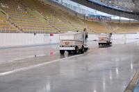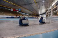 3 августа в конькобежном центре «Коломна» начался сложный процесс заливки льда для нового спортивного сезона. В данный момент здесь проходит первый этап – подготовка к заморозке, а именно мойка и смачивание бетонной плиты арены.