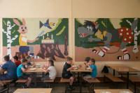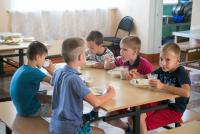 Для каждого отряда создана своя спальная комната, где в отсутствие воспитанников проводят санитарную обработку. В столовой за одним столом находятся одновременно не более четырех человек. Для питья раньше использовали фонтанчики. В этом году их заменили на бутилированную воду и одноразовую посуду.