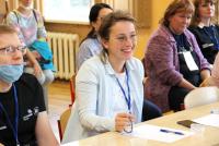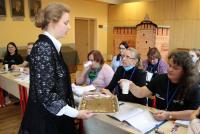 Сегодня конкурсанты шагнули из виртуального мира в реальный: разработали, а затем провели фрагменты экскурсий для групп волонтеров. Для этого на демонстрационной площадке компетенции была подготовлена экспозиция с экспонатами из Свято-Троицкого Ново-Голутвина монастыря.