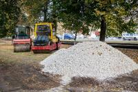 На автомобильной парковке у Коломенской ЦРБ на улице Октябрьской революции продолжают ремонт дороги. Подрядная организация уже выполнила фрезерование, локальную укладку выравнивающего слоя асфальтобетона и демонтировала бортовой камень.