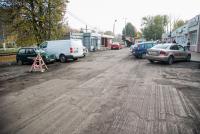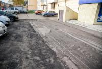 Дорожники начали работу с небольшой задержкой, после того, как жители освободили парковку от автомобилей. Первые дни люди продолжали оставлять здесь транспорт на время похода в магазины или больницу.