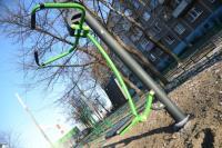 Ассортимент игровых элементов на детской площадке во дворе дома № 1 по улице Юбилейной заметно расширился. Раньше для ребят были доступны лишь маленькая горка и пружинные балансиры. Теперь для детей помладше установили ещё песочницу, карусель, подвесные качели и парный балансир, а для тех, кто постарше - уличные тренажёры.