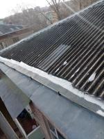 "Свес зимой - это больное место, - объясняет начальник участка строительных работ ООО «ДГХ» Андрей Сучков. - Снег на крыше тает, вода стекает на жёлоб в конце свеса и намерзает, так как он гораздо холоднее. Через некоторое время наледь начинает задерживать новую воду. Ей некуда деваться, и она поднимается вверх и затекает под шифер или под свесы".