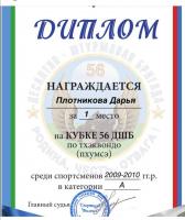 Дарья Плотникова – воспитанница коломенской школы по спортивным и прикладным единоборства. Тренирует её Александр Хон. На соревнованиях она отлично показала свои навыки, теперь в её копилке – первое место межрегионального турнира.
