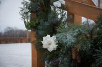 Полюбившееся коломенцам и гостям города место для прогулок - Москворецкую набережную - украсили к Новому году. На перилах входной группы закрепили еловые ветки с декоративными белыми бантами и шарами.