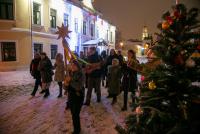 Программа началась на улице Лажечникова, группа стартовала от культурного центра «Лига» и направилась в сторону Соборной площади. Участники колядовали, пели и поздравляли прохожих со светлым праздником Рождества Христова.