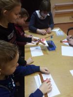 Далее участникам акции было предложено сделать открытку в виде солдатского треугольника. Секреты последовательного складывания были открыты для всех присутствующих. Желающие подготавливали и вписывали текст – пожелание ветерану.